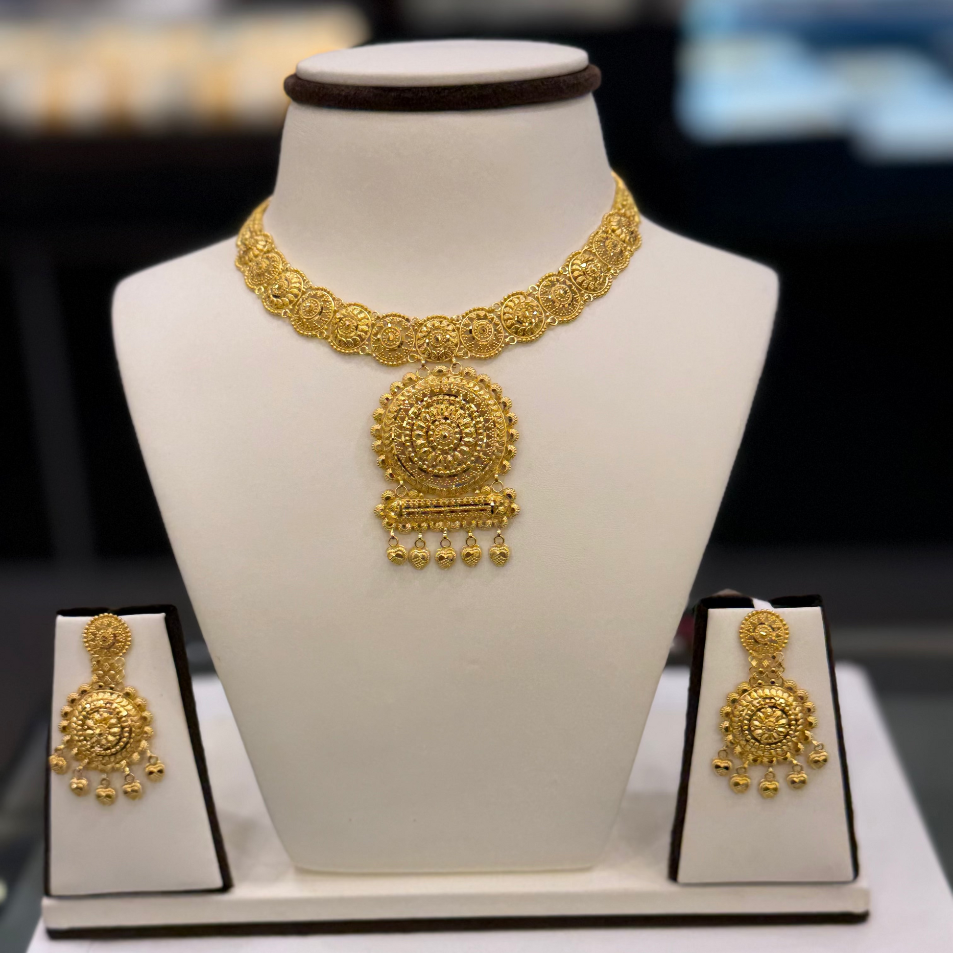 We offer a wide range of 22-carat gold jewellery including necklaces, rings, bangles, earrings, and custom-made pieces for all occasions.